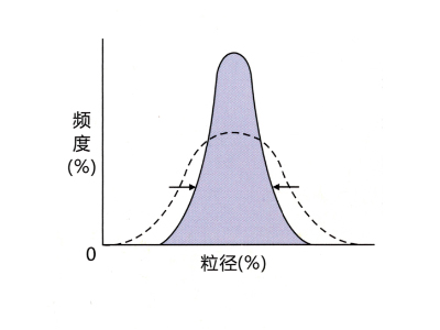 ![]() 粒度分布 ![]() 相比傳統(tǒng)磨機(jī),即使在相同的平均粒徑,它可以得到集中的粒度分布。 |